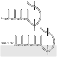 Worked right to left along a hem, with the edge of the fabric away from you.