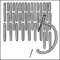 A close, flat fill made up of alternating groups of three or four vertical and four horizontal satin stitches. Found in Jacobean embroidery.
