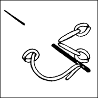 Used in Richelieu and Italian cutwork. A straight pin is used as a gauge for the picot loop and then removed.