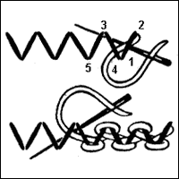 Looks similar to Blanket Stitch, but is worked vertically, top to bottom, rather than horizontally.