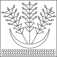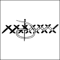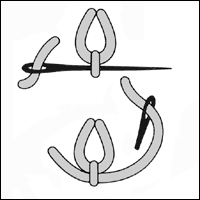 Two variations: the first (sometimes called Detached Wheatear Stitch) looks more like a bull's head and is worked with a loose horizontal stitch that is held down in the middle with a Detached Chain Stitch; the second consists of a Detached Chain Stitch and two angled Straight Stitches on either side.